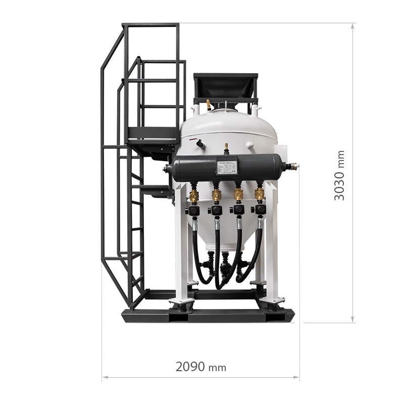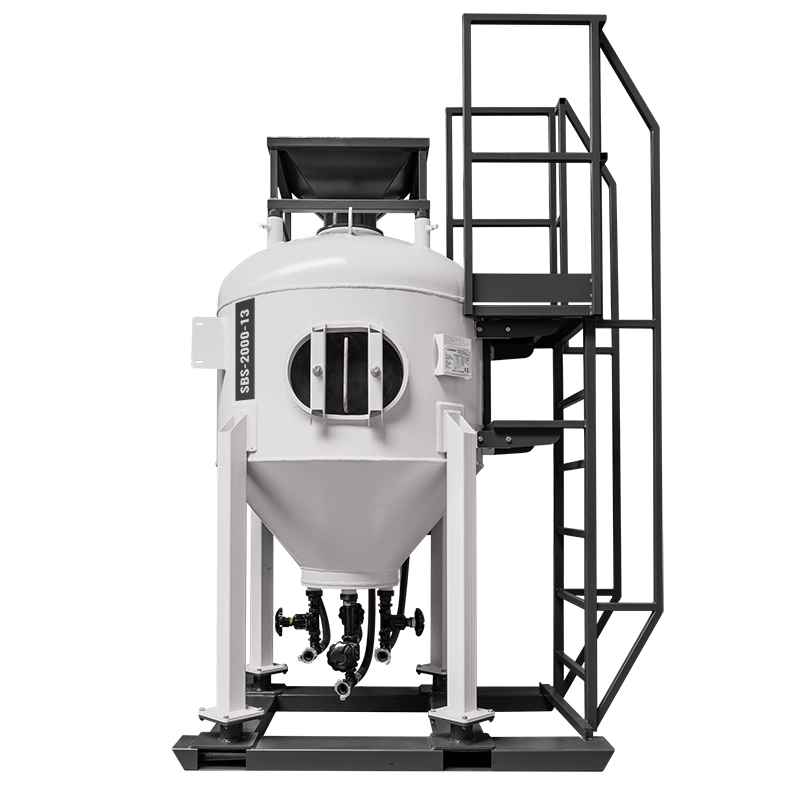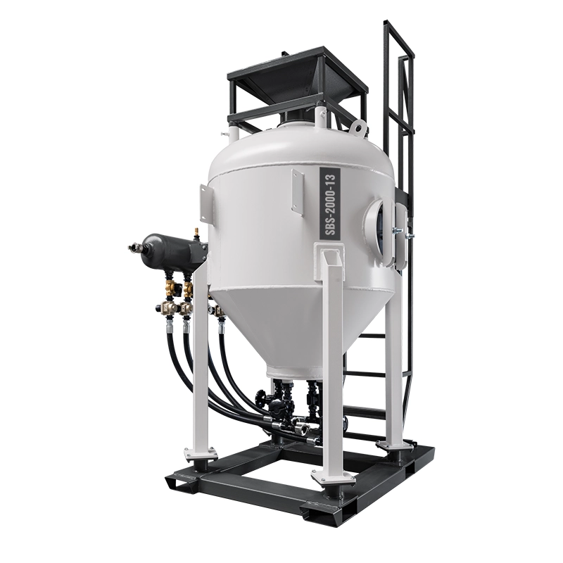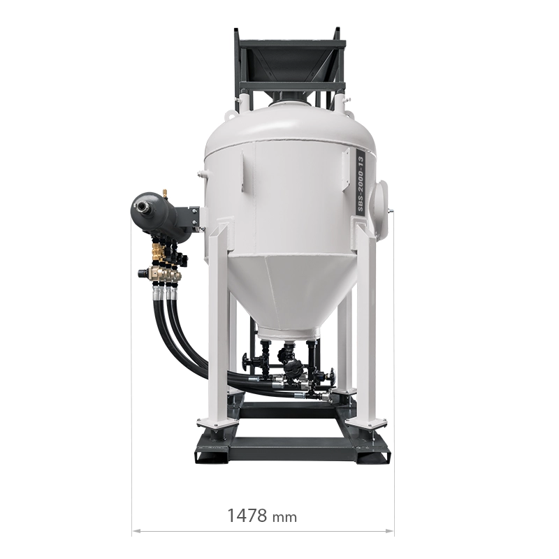 Die Strahlanlagen der SBS-Serie ermöglichen eine Oberflächengüte bis zur Klasse SA-3/SP5 und eine Kapazität von bis zu 276 m2/h erreichen. Die Sandstrahler der SBS-Serie sind mit großen CamLock-Anschlüssen ausgestattet, die eine schnelle und sichere Verbindung mit höchsten Druckluftdurchsätzen garantieren. Die Strahlmittelbeladung erfolgt manuell oder automatisch über ein pneumatisch betätigtes Füllventil, das mit einer Gummimembran verbunden ist - ohne die Notwendigkeit ineffizienter Gewindeanschlüsse -, wodurch die Strahlgeräte der SBS-Serie sicherer und einfacher zu bedienen sind. Das Strahlgerät ist außerdem mit einem großen Inspektionsventil ausgestattet, das eine schnelle Entleerung des Tanks und die Möglichkeit einer internen Inspektion ermöglicht.