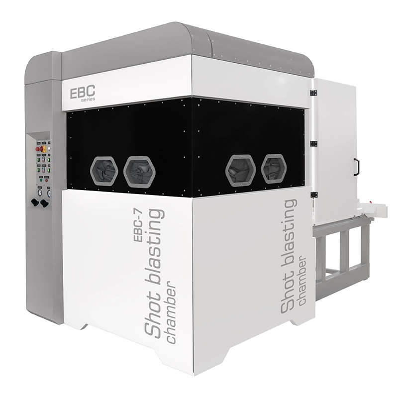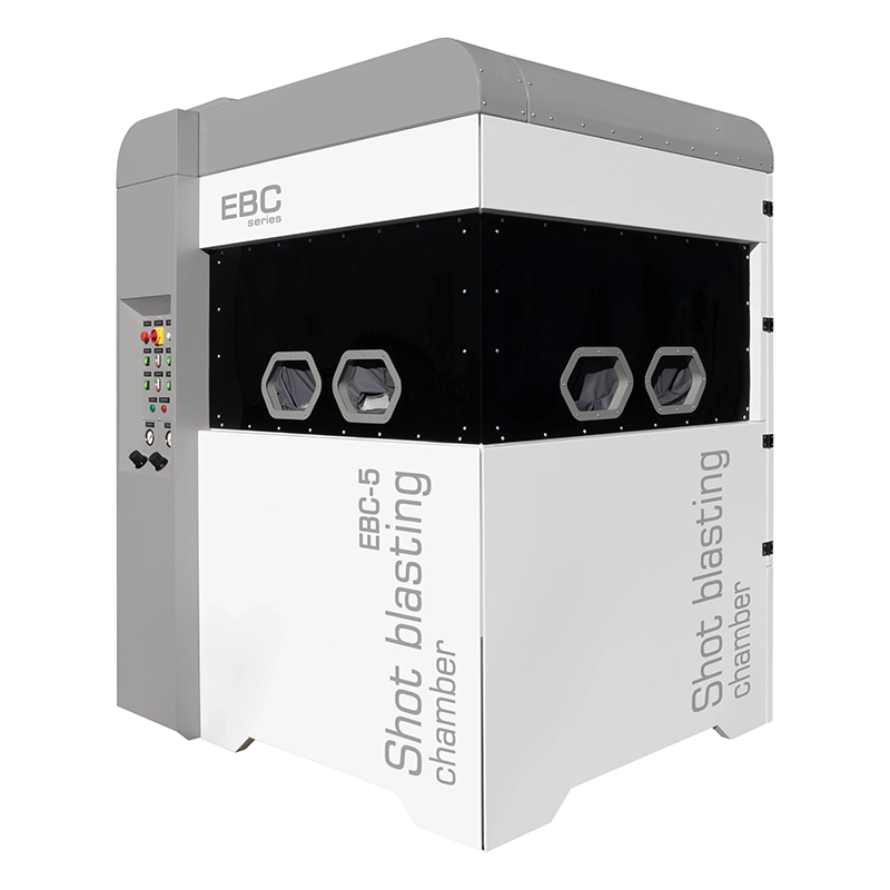 Strahlanlagen der Serie EBC arbeiten in einem geschlossenen System und gewährleisten die Entfernung von Verunreinigungen, die Reinigung und Rückgewinnung des Strahlmittels sowie dessen erneute Rückführung in den Kreislauf. Die Strahlbearbeitung in den Strahlkabinen der Serie EBC kann manuell erfolgen (der Bediener befindet sich außerhalb der Bearbeitungszone und führt den Strahl manuell über eine in einer speziellen Halterung montierte Düse), halbautomatisch oder automatisch (wobei die Bewegung der Werkstücke und der Düse durch pneumatische bzw. elektrische Antriebe gesteuert wird). EBC-Strahlkabinen können optional mit Antrieben für Be- und Entladung, Drehung sowie Transport der Werkstücke ausgestattet werden.