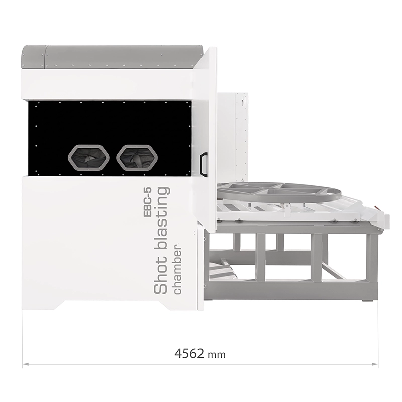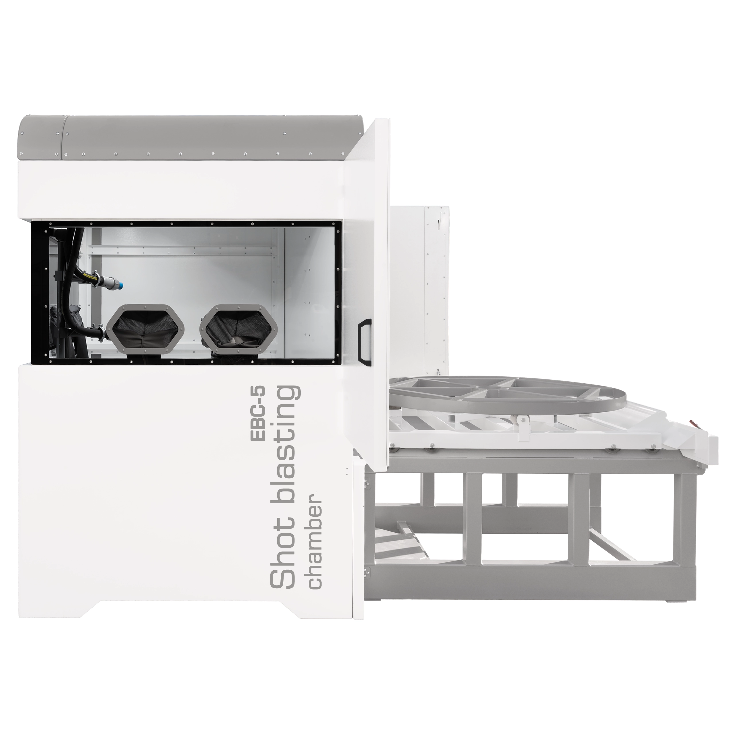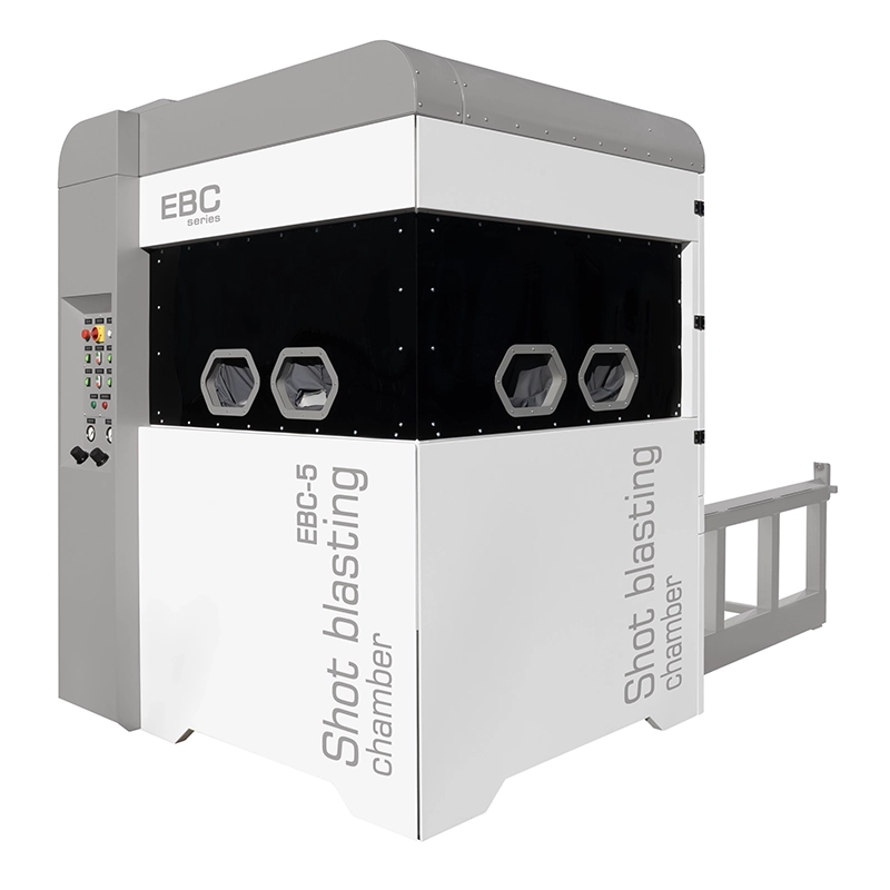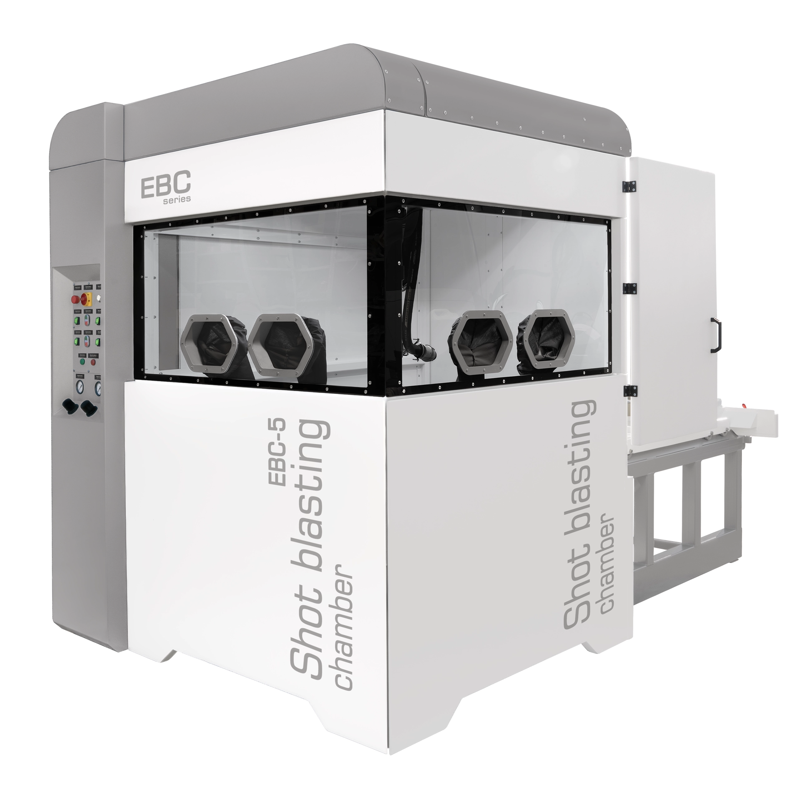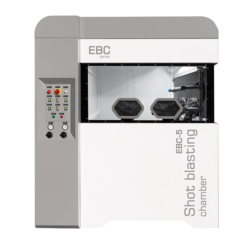 Strahlanlagen der Serie EBC arbeiten in einem geschlossenen System und gewährleisten die Entfernung von Verunreinigungen, die Reinigung und Rückgewinnung des Strahlmittels sowie dessen erneute Rückführung in den Kreislauf. Die Strahlbearbeitung in den Strahlkabinen der Serie EBC kann manuell erfolgen (der Bediener befindet sich außerhalb der Bearbeitungszone und führt den Strahl manuell über eine in einer speziellen Halterung montierte Düse), halbautomatisch oder automatisch (wobei die Bewegung der Werkstücke und der Düse durch pneumatische bzw. elektrische Antriebe gesteuert wird). EBC-Strahlkabinen können optional mit Antrieben für Be- und Entladung, Drehung sowie Transport der Werkstücke ausgestattet werden.