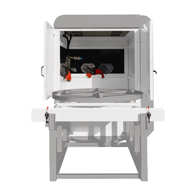 Strahlanlagen der Serie EBC sind mit hochleistungsfähigen Strahlmitteldosiersystemen ausgestattet, die den gleichzeitigen Betrieb von 1 bis 6 Arbeitsdüsen ermöglichen, sowie mit Arbeitstischen mit einstellbarer Drehgeschwindigkeit und Drehrichtung und leistungsstarken Beleuchtungssystemen.